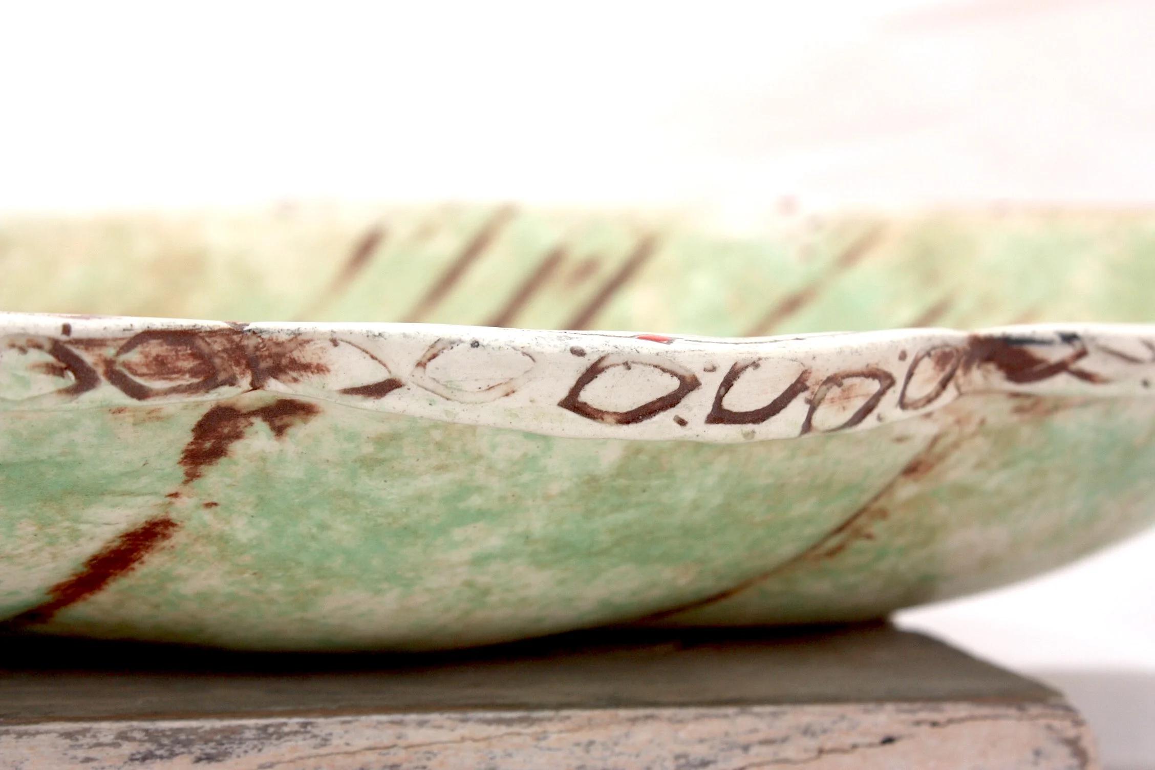 I read a post in a comment section on Etsy recently that this person had found pottery in a major store chain that was manufactured in China to look like it was handmade, complete with bumps and "wonky handles" as this person put it. It made me more convinced than ever that the beauty and value of truly handmade items in our daily lives will become increasingly sought after and valued as our global society becomes more automated. With the advent of evolving artificial intelligence and robotics, knowing that the items we surround ourselves with were actually touched by human hands may become a necessity for our emotional well-being. While I'm all for efficiency and strive to achieve it in some respects in my own daily practice, connecting and reconnecting to the things that center me to my true human nature take precedence. As we can find the mark of the hand in handmade objects around us, we can even discover it in prehistoric pottery and paintings on cave walls and marks on sandstone cliffs and thus we maintain a connection to our prehistoric ancestors.